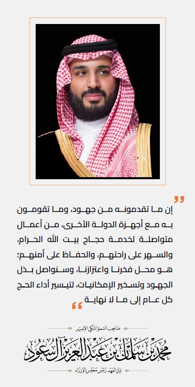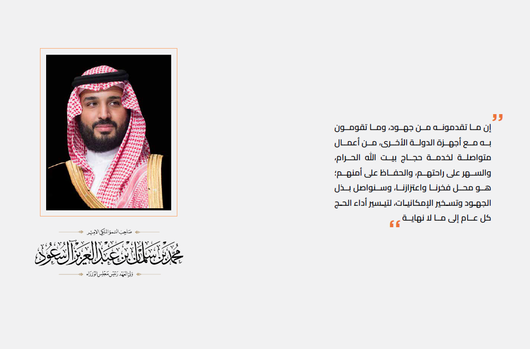 ومن هذا المنطلق، نعمل على مدار العام وفق رؤية وأهداف استراتيجية راسخة، تتماشى مع مستهدفات رؤية 2030 لتطوير منظومة الحج وتعزيز التجربة الدينية والثقافية لضيوف الرحمن، بما يسهم في تمكين أكبر عدد من المسلمين من أداء فريضة الحج والعمرة عبر تطوير البنية التحتية واستثمار الإمكانات البشرية والمادية، بما يعكس الصورة المشرفة للمملكة ويعزز مكانتها كوجهة إسلامية أولى يقصدها المسلمون من مختلف بقاع الأرض.